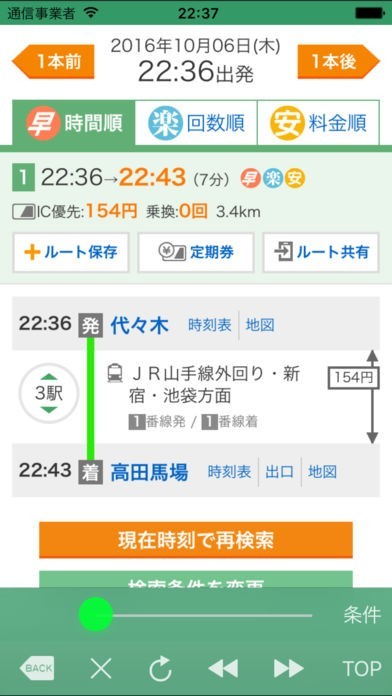 簡単な操作で乗り換えを調べることができる