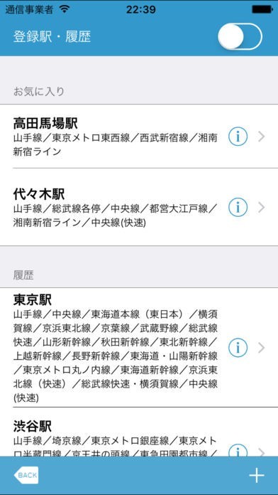 現在地と目的地を登録するだけで路線の乗り換えルートを簡単に表示出来るようになっています。よく利用している区間を「お気に入り」に追加する事が可能で、料金や距離も確認していけます。