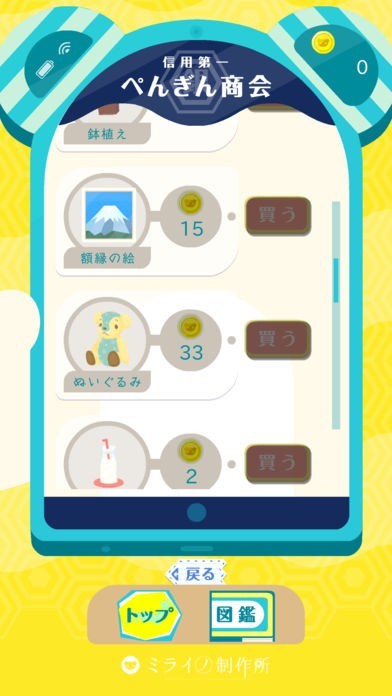 クイズに答えていくとコインがたまっていきます。コインを使えば、ゲームのぺんぎん商店でお買い物ができます。色んな商品を買ってたのしみましょう。可愛い商品がたくさんあるので、子どもも喜ぶこと間違いなしです。
