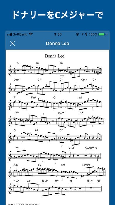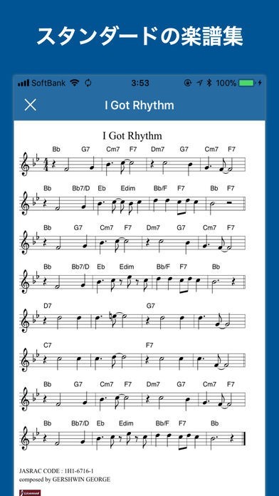 無料でもちょっとだけジャズスタンダードの譜面が見られる。歌詞などもあるので便利。音符の大きさを変えられるのがよかった。見やすい。