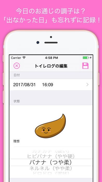 ・トイレに行った回数や時間、排便状態などを詳細に記録できる(過去に遡っての記録もOK)