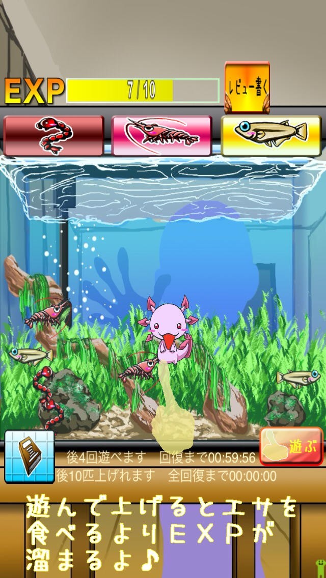 エサは1分に1度上げる事が出来、10匹まで一気に上げれます。