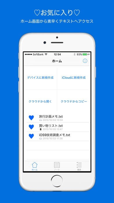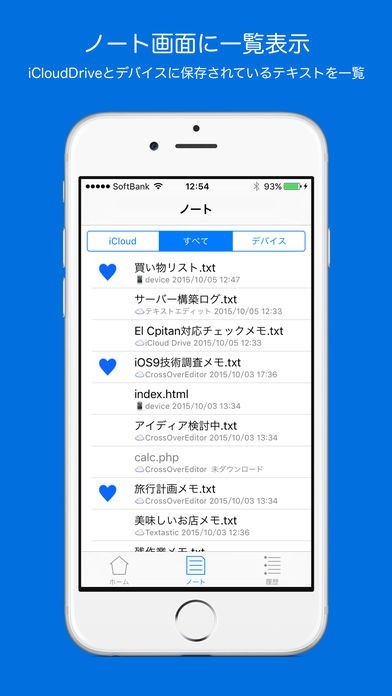 ノート画面でiCloudDriveとデバイスに保存されているテキストを一覧表示