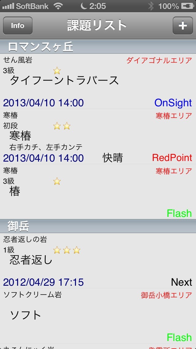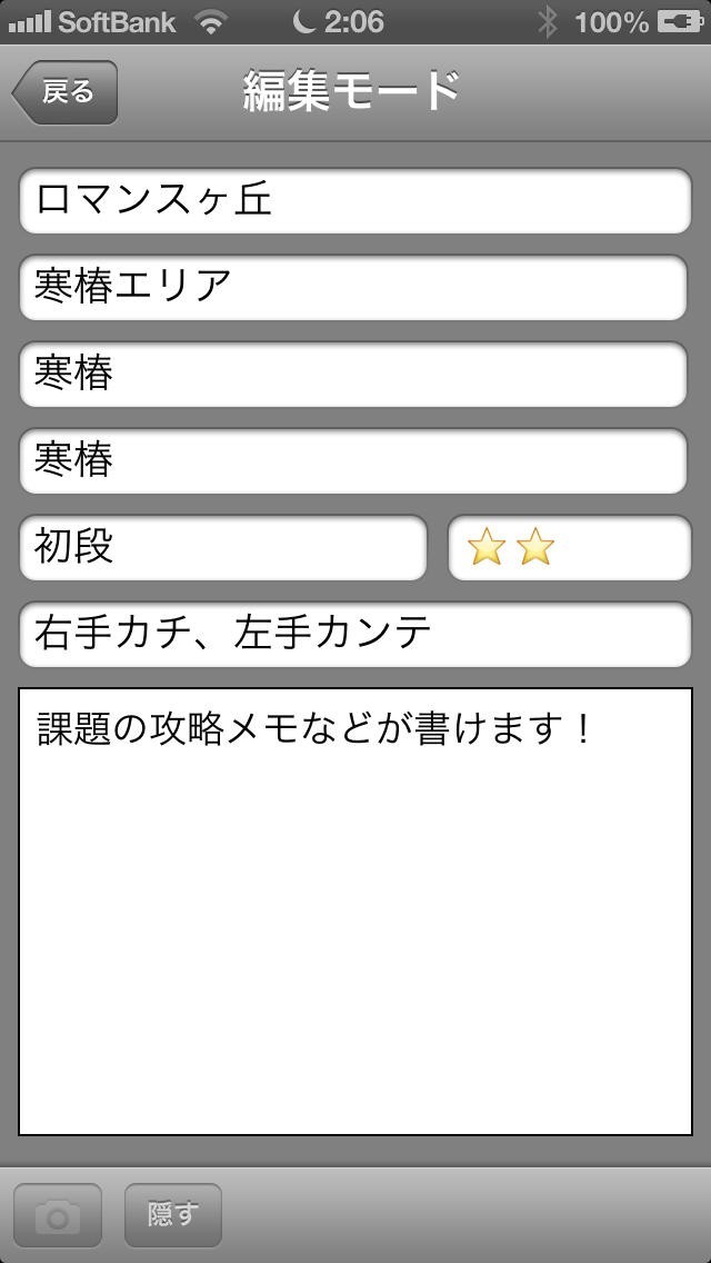 App Storeより引用クライミングの課題を登録して、登攀記録を管理できます。