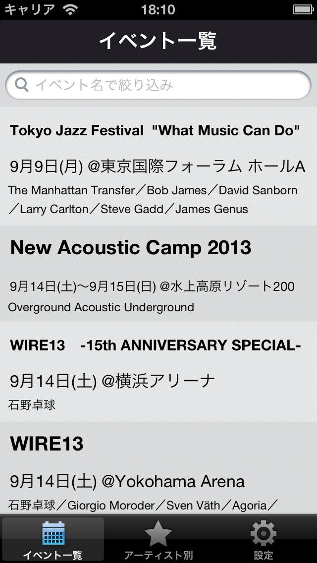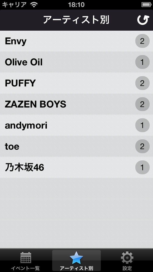 本アプリは、あなたがiPhoneに入れている音楽のアーティストが出演するイベントを自動でチェックします。