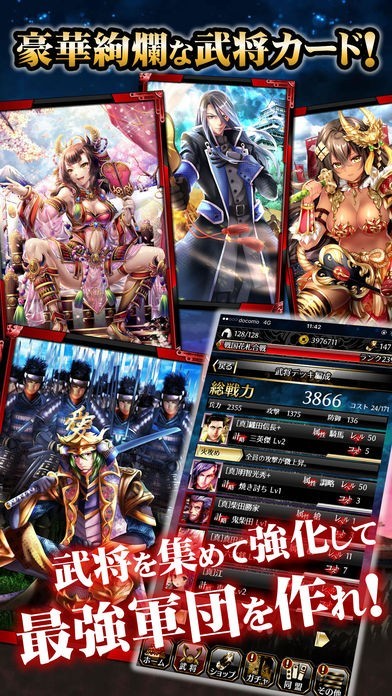 ガチャなどで武将を集め、自分だけの最強の軍団を作りましょう。そして、その軍団で新たな武将に勝負を挑むのです!武将ごとに違った戦略で攻めてくるので、頭を回転させて戦いましょう。