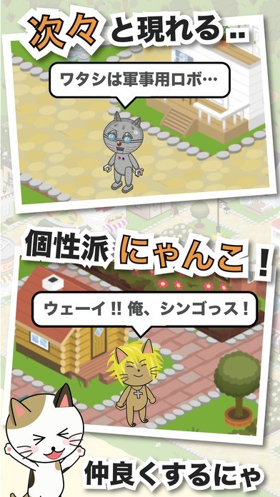 可愛いにゃんこがたくさん!建物を作って住民を増やし、あなた好みの街を自由につくってみよう!