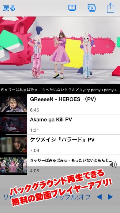 リピート再生にも可能!お気に入りの音楽動画を繰り返し再生!