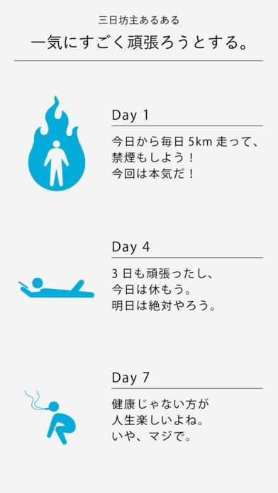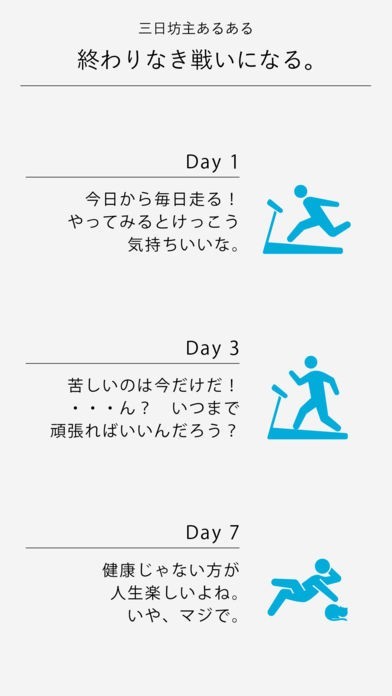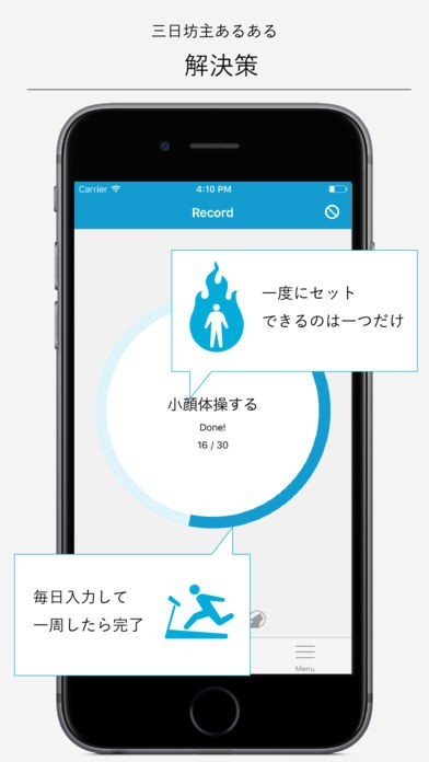 運動や健康維持などをやると決めても継続できずに大抵三日坊主で終わってしまう人や禁煙や無駄使いなど何かをやめたいと思っている人にその行動を習慣化させるのにおすすめな『継続する技術』は一度のセットでは一つの事しか設定できませんがそれだけにその一つの事に集中してできるので無理なく習慣化して継続して行くことができるアプリになっています。