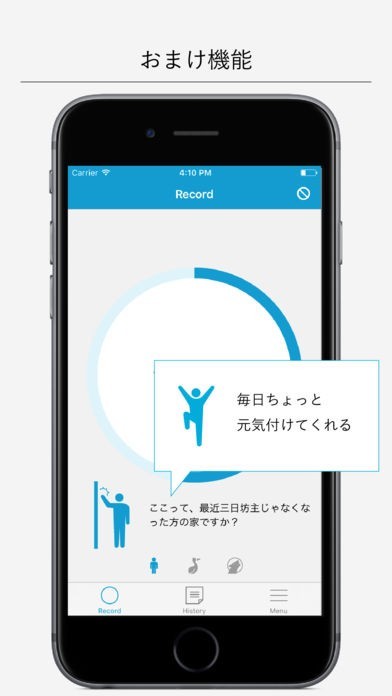 その日の目標が達成できた時に画面の円をタップしていくと応援のコメントをもらえる機能が付いているのでモチベーションを上げて取り組んでいくことができるようになっています。