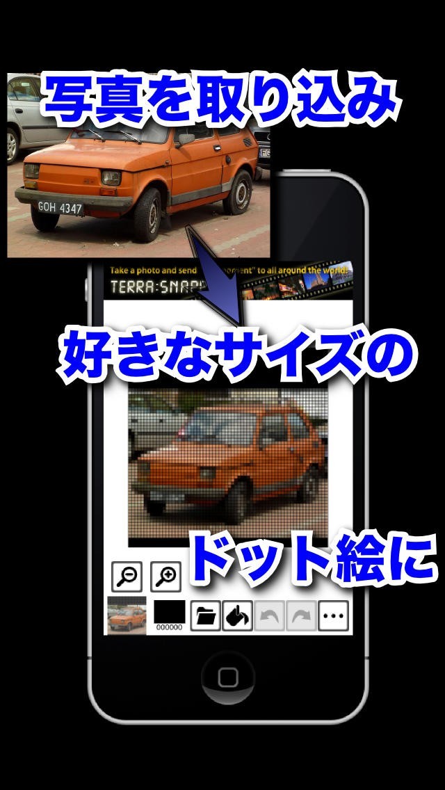 読み込んだ写真をドット画像化。指先スワイプで移動や縮小などの調整も可能