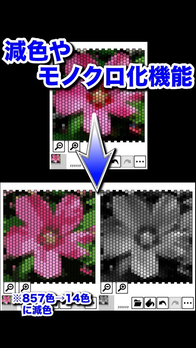ビーズ織やアイロンビーズの設計図に最適!色番号表示機能で類似色も楽々見分けられる!