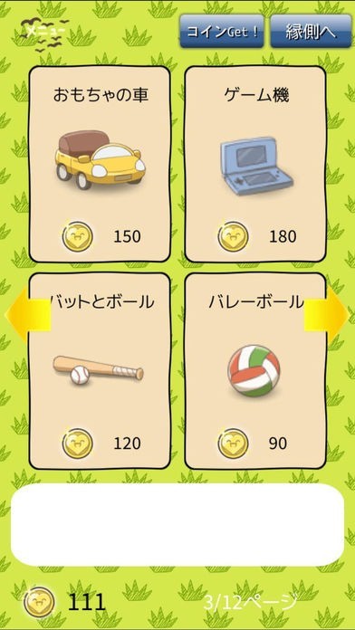 お庭に、食べもやグッズを設置して可愛い動物たちが遊びに来てくれるのを待つだけの簡単な操作です。可愛い牛やカエルなど色々な動物が登場するのでアルバムをコンプリートするのも楽しみの1つです。また、縁側に座るおばあちゃんや風鈴などをタッチしてみましょう。