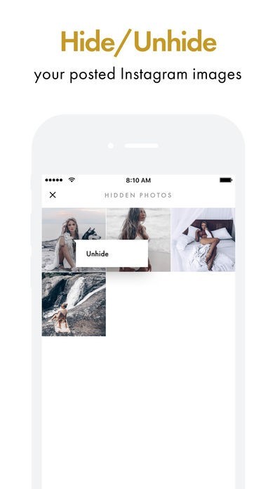 • Hide and unhide your posted Instagram images to see what your feed would look like;