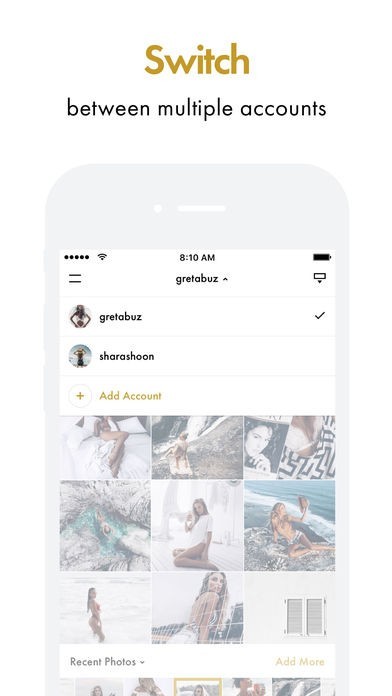 • Switch between multiple Instagram accounts;