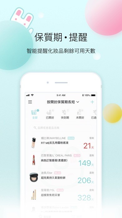 獨家擁有60萬條化妝品數據,讓妳輕松壹掃加入管理清單讓每壹件美妝效期輕松管理。當添加的產品進入保質預警期會自動提醒您,再也不用擔心化妝品過期帶來的危害。