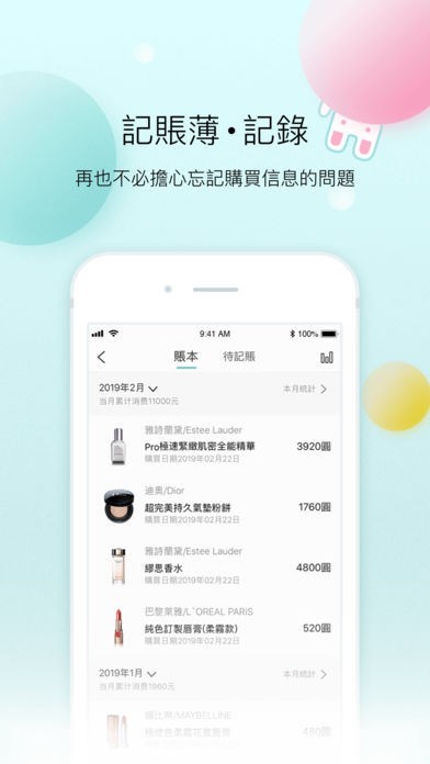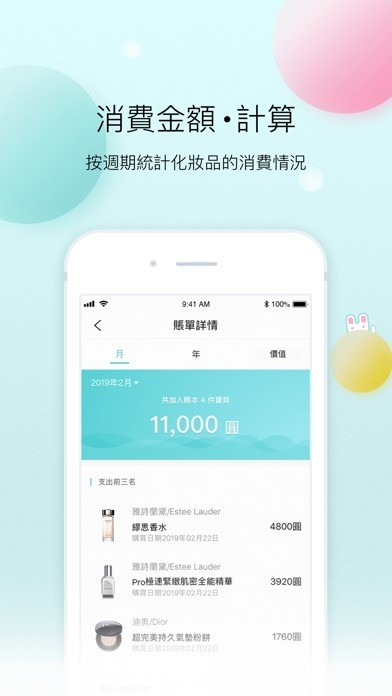 自動計算出妳最近化妝品的消費清單,以圖形方式展現,讓妳壹目了然