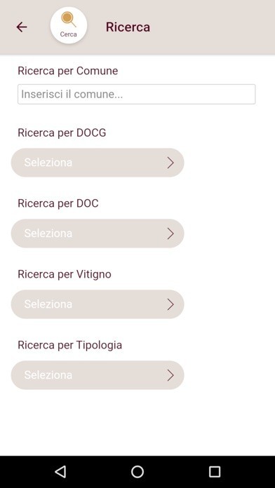 Inoltre è possibile fare ricerche per DOCG, DOC, vitigno, tipologia e comune.