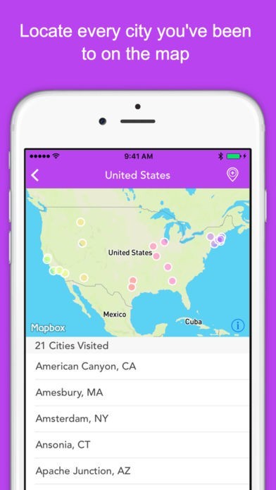 - See all the cities you've visited on a colorful map