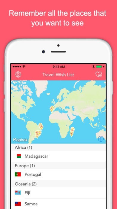 - Add countries and cities to wish list