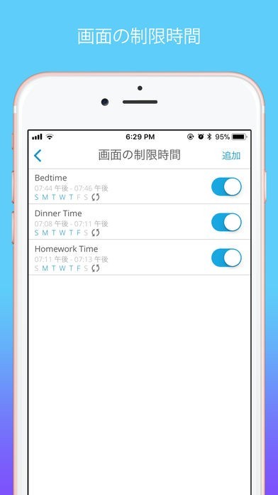 App Storeより引用FamilyTimeペアレンタルコントロールアプリ – 家族全員の機器のコンテンツや時間を管理する新しい方法です。スクリーンタイム制限および子どもの位置情報やインターネット、通話、アプリブロック、ジオフェンシングその他の携帯電話活動をモニターおよび管理します。