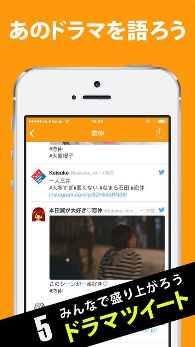 ドラマ名のハッシュタグがついたツイッターを検索可能。ドラマ好きな視聴者同士で盛り上がれる