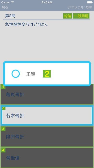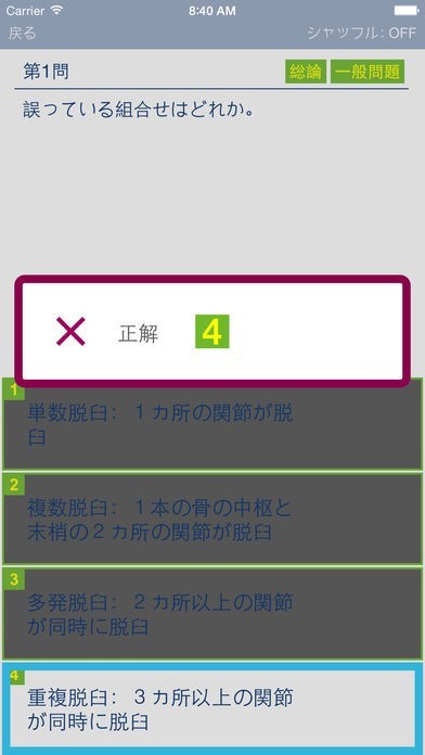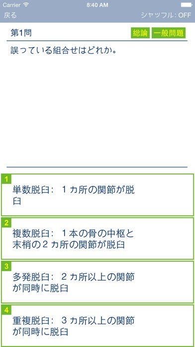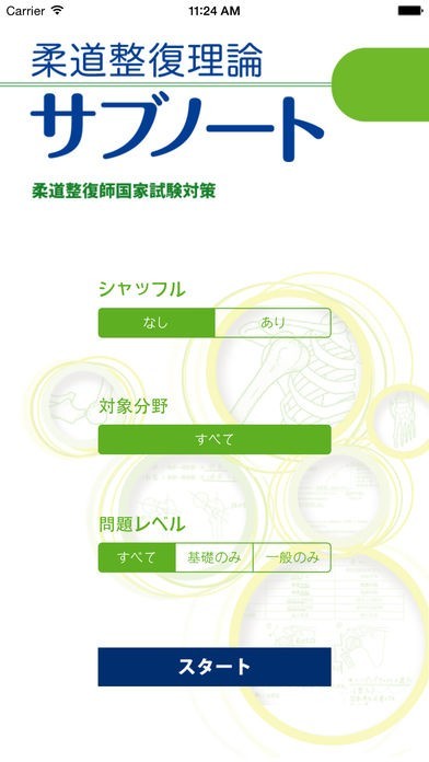 App Storeより引用アルテミシア(森ノ宮医療学園出版部)発行、『柔道整復理論 サブノート』購入者がダウンロード可能な、「柔道整復師国家試験対策オリジナル問題集」iPhone用アプリです。