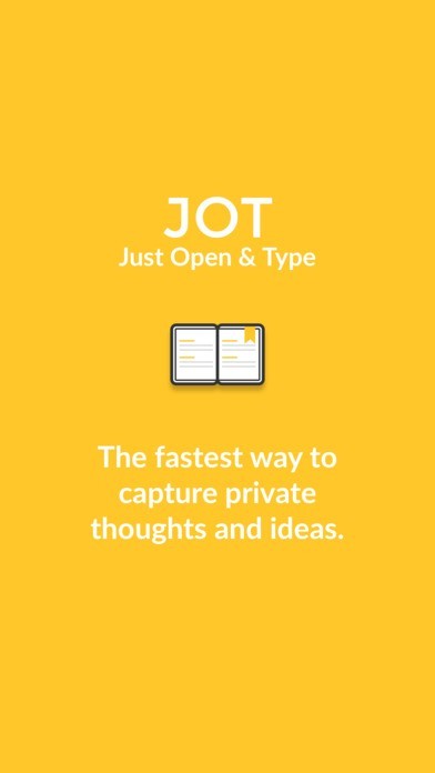 App Storeより引用JOT (Just Open & Type) is a new kind of journal app designed to capture thoughts and ideas the moment they pop into your head. Like a physical journal, it opens ready for typing so you can start writing immediately without having to look for a "new entry" button. JOT locks up automatically when you leave or switch apps, so your thoughts always stay private.