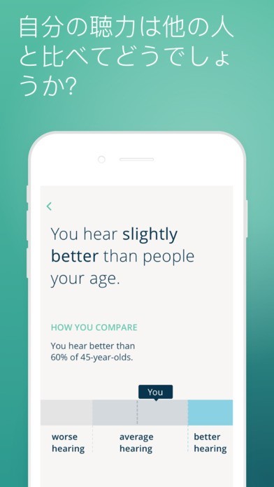 自分の聴力が何歳ぐらいなのか気になりませんか? 音の聞こえ方は年齢にも左右されるものの、自力では衰えを実感しにくいものですよね。 「Mimi ヒアリングテスト」は、そんな聴力を手軽に検査してくれるアプリです。 メインとなる聴力テスト機能は6分程度で完了することができるので、気軽な気持ちで挑戦できるのも嬉しいポイント。 結果を耳年齢として表示してくれる他、それぞれの聴力に合わせたアドバイスなども行ってくれます。 気になる耳年齢を測定してみてはいかがでしょうか!