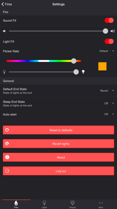 App Storeより引用Relax by the fire light show using your Philips Hue lights. Watch your lights glow and flicker to the sounds of a fire.