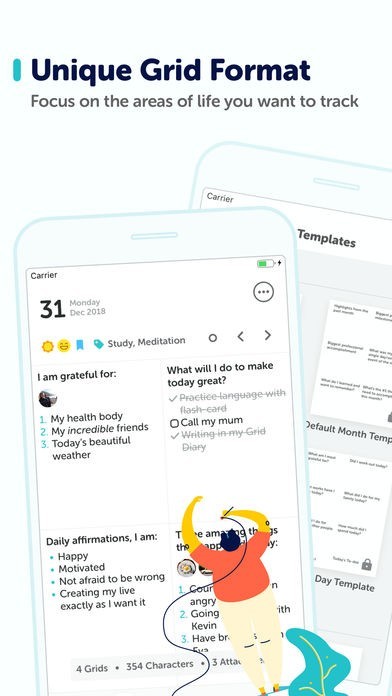 Instead of wondering what you should write about each day, Grid Diary is introducing a unique way of writing a diary. It combines powerful diary and planner templates with reflective prompts to help you focus on the areas of life you want to track and flourish in every way.