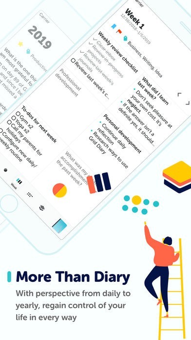 Grid Diary is not just your average journal. It’s a customizable and flexible planner, organizer, mood tracker, and much more. With the powerful built-in features, you can build your own journal system that helps you cultivating happiness, developing positive habits, chasing your dream… The possibilities are endless. Grid Diary is an excellent choice for gratitude journal, weekly planner, bullet journal, yearly overview, goal tracker, 5-year journal and more.
