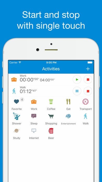 アイコン上にある日常生活の行動をスタートするときとストップするときにタッチするだけの簡単操作で、日常生活をどんなリズムで過ごしているのか確認することができます。