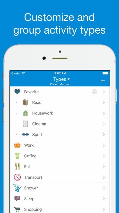 アクティビティをグループ化したり、カスタマイズは自由に設定できます。また、カスタムアイコンのアップロードも可能です。時間を把握するために自由にアプリをカスタムしましょう。