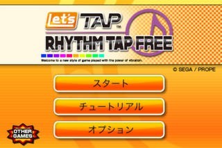 レッツタップ:リズムタップ 無料版は、画面に表示される丸い光(リズム玉)の動きに合わせてタイミングよくタップして曲を演奏するリズムゲームです。箱やテーブルなど振動の伝わりやすいものにスマートフォンを置いて箱やテーブルを叩いてスマートフォンに振動を伝えてしてゲームを進行させるというユニークな遊び方もあります。ゲーム画面は一種類のみで、曲によってリズム玉の進行が異なるスタイルとなってはいますが、ゲーム内のキャラクターというものは存在しておらず、ゲーム内容を楽しむものとなっています。なお、無料版では5曲が用意されていますが有料版では20曲が用意されています。