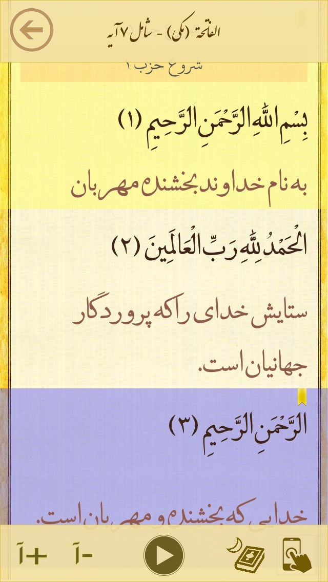 App Storeより引用متن کامل سوره های قرآن کریم به همرا ترجمه و تفسیر المیزان