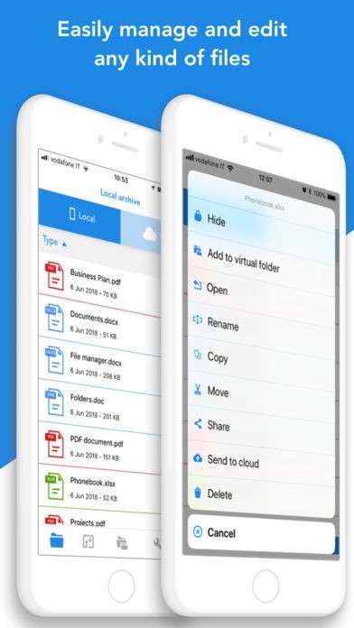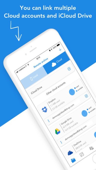 You'll not need to install a separate app for each storage provider that you want to use from your device! Link all cloud accounts in Total Files and enjoy the full integration with iOS. For example, thanks to the iOS “Files” integration, you can directly save files to one of the cloud linked in Total, simply using the "Save in files” feature available in any apps on your device.