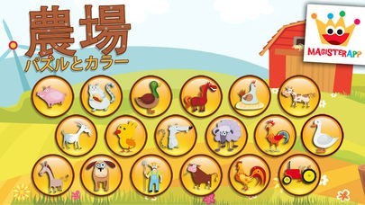 キッズ向けの農場にいる動物たちのパズルとねりえです。楽しい仕掛けが沢山あり、パズルが完成しても飽きにくいアプリです。 子供の知育にぴったりですので、父親や母親と一緒に楽しめます。 快適操作のパズルを仕上げると、カラフルな沢山の風船が飛んできます。 飛んできた風船はタッチすると割れたり、上に飛んで行く楽しさがあり、パズルを完成させた喜びを倍増させます。 右上のパレットのマークを押すとワンタッチでねりえに早変わりします。 ねりえは好きなように塗れますので子供が楽しめます。 また背景の動物たちはタッチすると左右に動いたり、風車にタッチすると回転したり、繊細に作られているので大人も楽しめる知育アプリです。