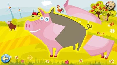 かわいい農場の動物たちのパズルとねりえが楽しめる!完成すると沢山の風船が出現したりサプライズが沢山!