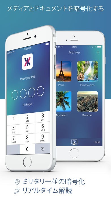 App Storeより引用Kymsは不可侵の保管庫で、マルチメディアファイル、文書、パスワードなどを軍用グレードのセキュリティ(AES暗号化)で隠したり暗号化したりすることができます。
