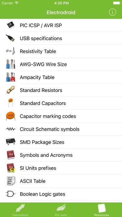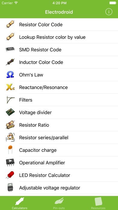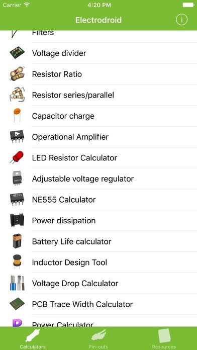 このアプリには「抵抗カラーコードデコーダ」や「SMD 抵抗コード」といった電子ツールが40種類以上も搭載されています。電子機器の測定や計算もこのアプリを使用すれば簡単に行う事が可能です・