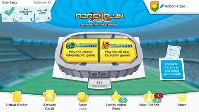 Activate your card and be part of the exciting Adernalyn XL™ community. Manage your own line-up and challenge hundreds of users all around or train your strategies challenging the AI. Are you ready to line up your favorite team? Get passionate, feel the excitement and enjoy the entertainment of the Adrenalyn XL™ Calciatori 2018-2019 Trading Card Game.