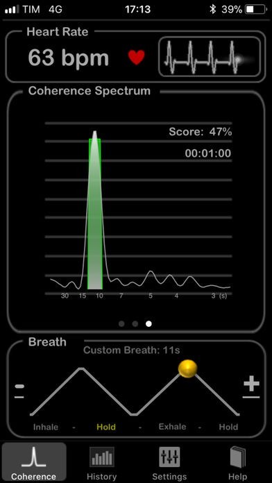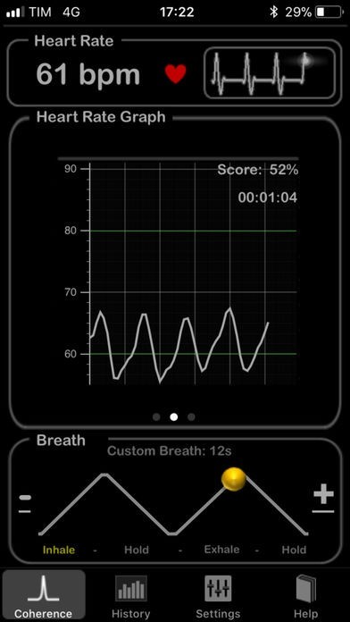 指示に従って呼吸をすることで心拍数の動きを安定させることができるようになるアプリです。心拍数が安定するとリラックス状態となり、パフォーマンスの向上が見込めるという考えに基づいて開発されました。