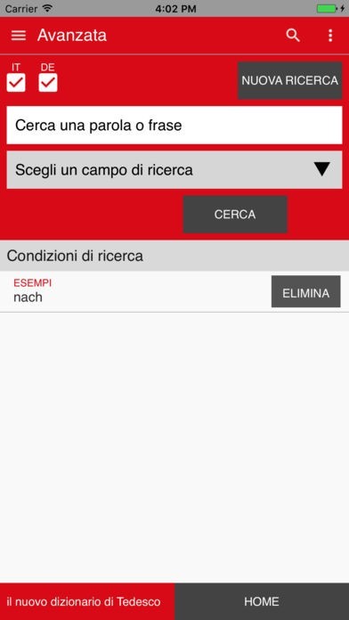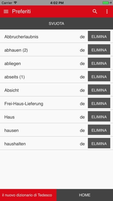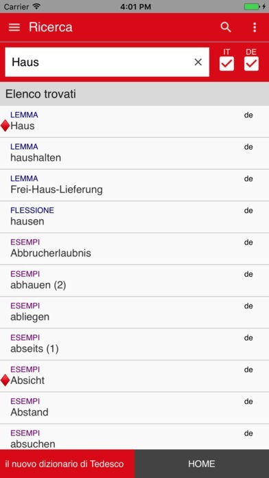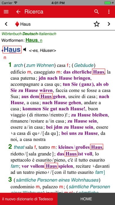 • attraverso la ricerca contestuale — basta tenere il dito su una parola all’interno di una voce per andare alla sua definizione