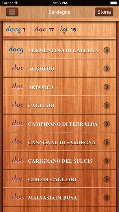 あらゆるワインについてのデータが分かるアプリです。イタリアのワインの格付けにはそれぞれDOCG・DOC・IGTという規定が用いられているのですが、それらのうちいずれかを満たしたワインのデータがすぐに分かるようになっています。