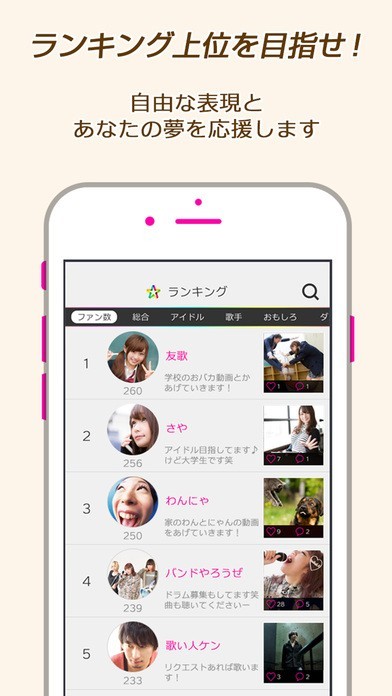 アイドルを目指す方も必見!自慢の動画を投稿して、いいねやファンを獲得しよう!