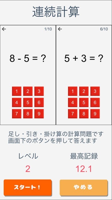 「毎日の脳トレーニング」では記憶力・思考力・思考速度を必要とする さまざまなミニゲームをプレイすることで自然に脳を鍛えていきます。 ゲームそのものは単純でもユーザーに合わせて難易度が上がっていくので いつまでも楽しく、脳もどんどんレベルアップ!