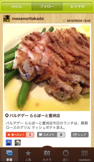 飲食店の美味しい食べ物の写真を撮って、共有することが出来る!
