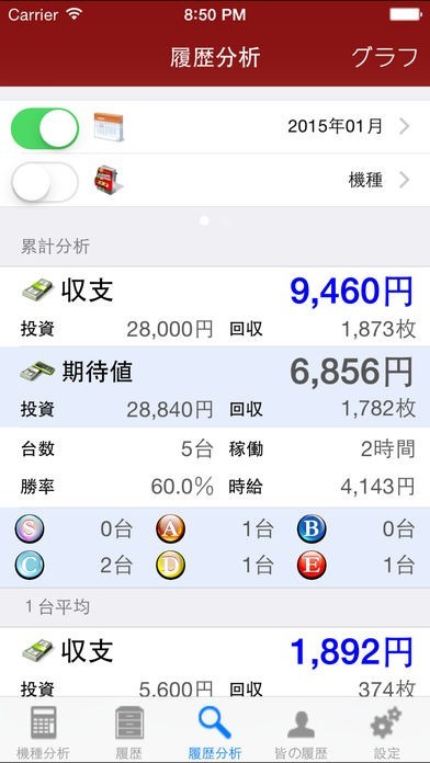 収支や期待値などのパチンコ情報の管理に使います。グラフで数値変化が見やすいです。