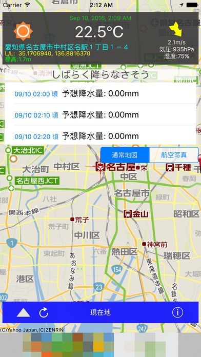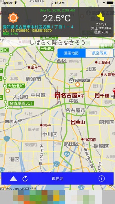 アプリで表示冴える地図は、通常の地図の他に航空地図を選択することもできます。また指をスクロールするだけで地図の拡大・縮小が自由自在なので自分が見やすいように地図を表示することができます。
